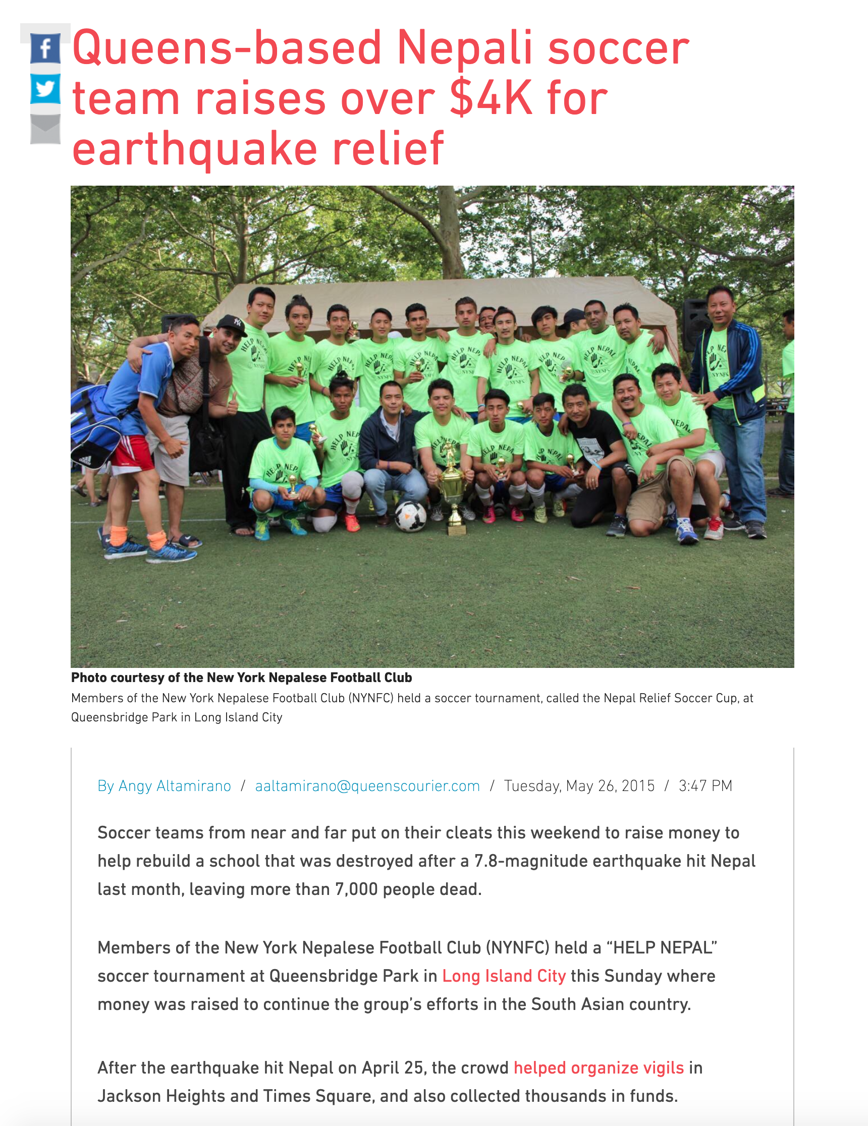 NYNFC stands for New York Nepalese Football Club, was first established in 2010. It is formed to unify all the Nepalese youth soccer players from various community. It is registered as non-profit organization (501-c3) in the state of NY.